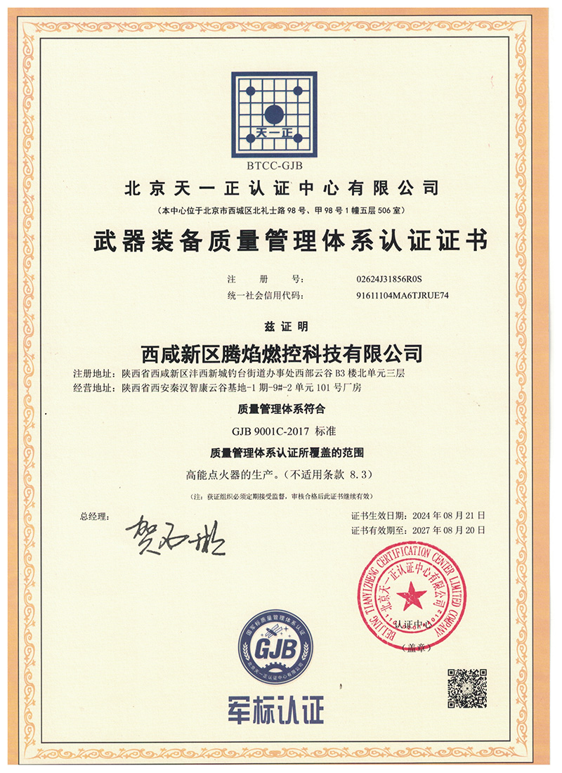 武器装备质量管理体系认证证书